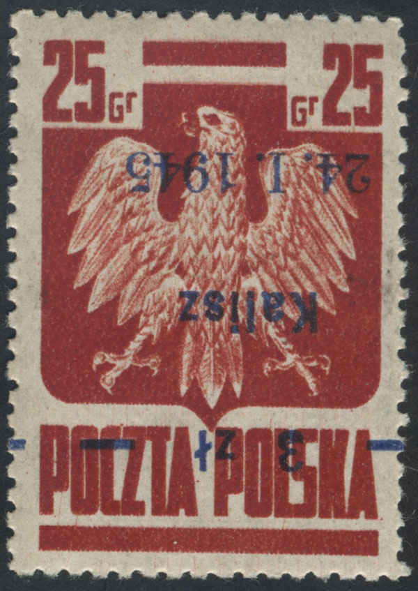 1945 wyzwolenie miast, znaczek z nadrukiem odwróconym, gwarancja i oznaczenie Walocha. | Fi.353No Mi.390VK |