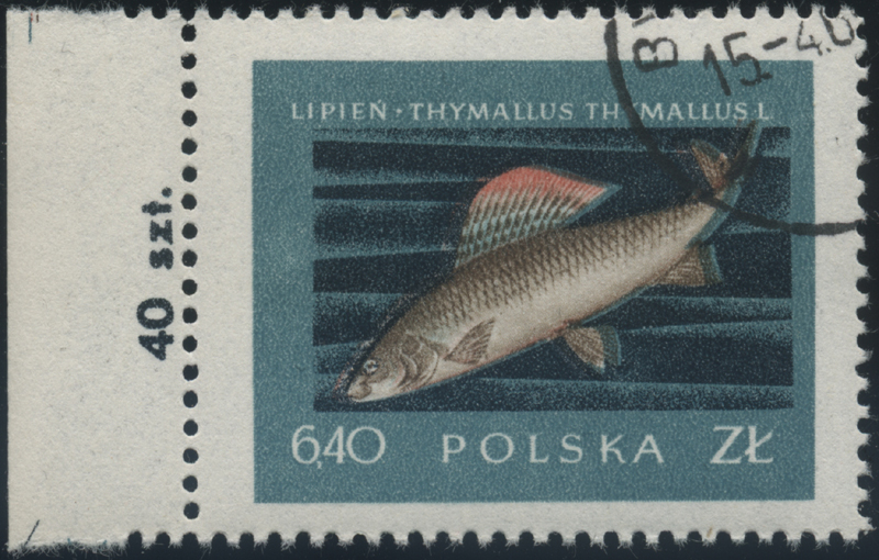 1958 szlachetne gatunki ryb, znaczek z niespasowanym drukiem barw, wrażenie druku podwójnego, gwarancja i opis Walocha. | Fi.906 Mi.1051 |