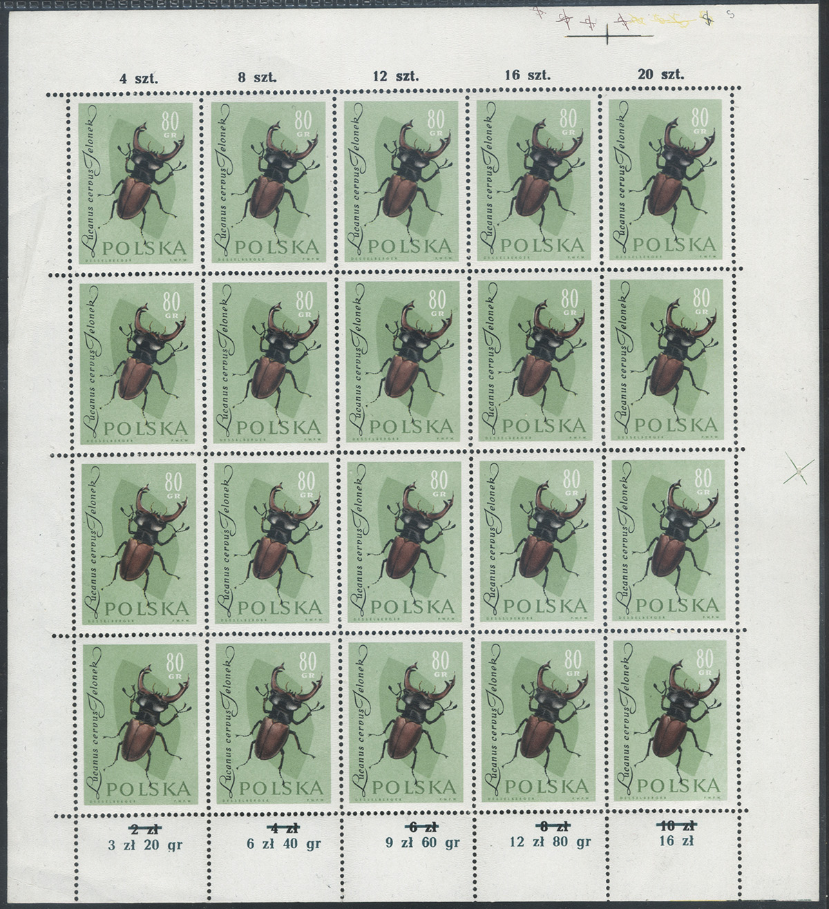 1961 owady chronione, arkusz znaczka za 80 gr. z nadrukiem korygującym liczby rozrachunkowe na dolnym marginesie. | Fi.1137 ark. Mi.1282 |