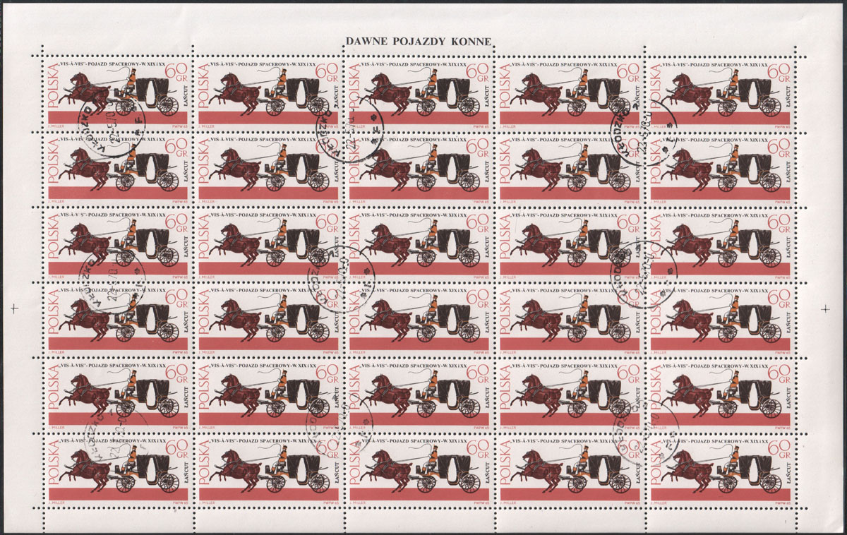 1965 dawne pojazdy konne, stemplowany arkusz znaczka za 60 gr. | Fi.1498 ark. Mi.1647 |