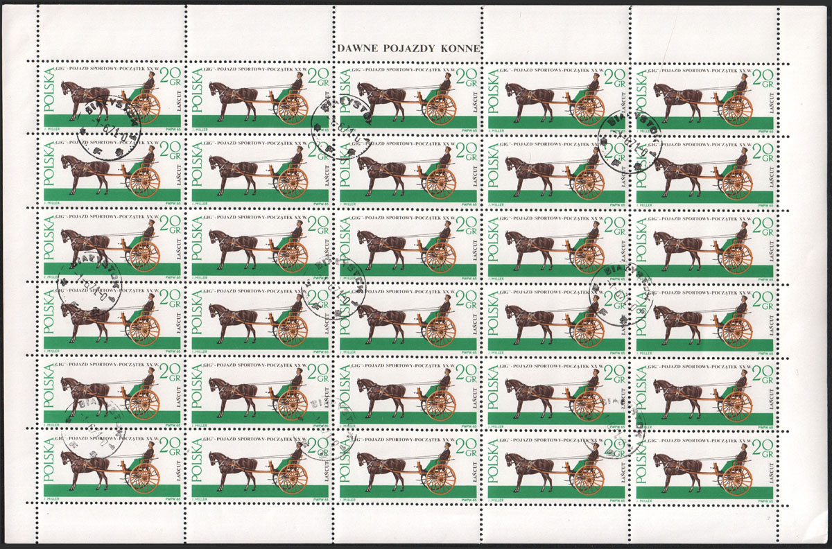 1965 dawne pojazdy konne, stemplowany arkusz znaczka za 20 gr. | Fi.1495 ark. Mi.1645 |