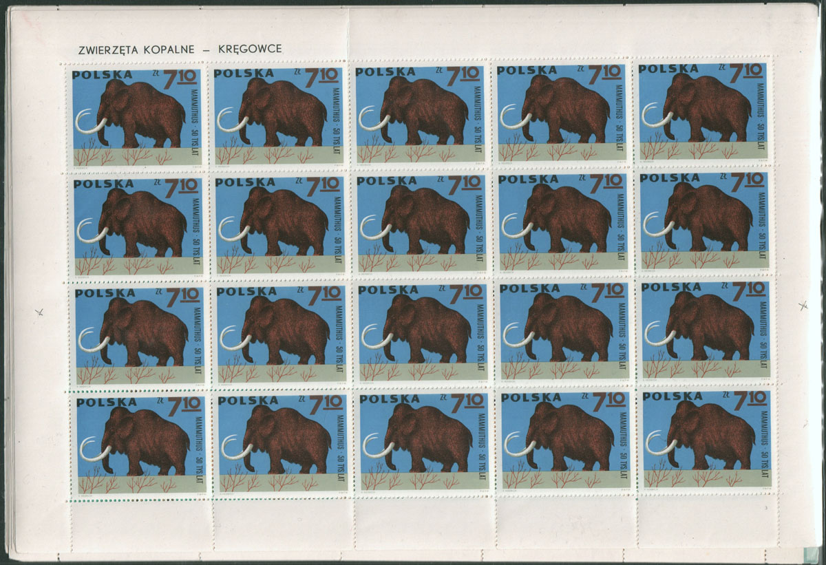 1966 zwierzęta kopalniane - kręgowce, seria w arkuszach sprzedażnych. | Fi.1506-14 ark. Mi.1655-63 |