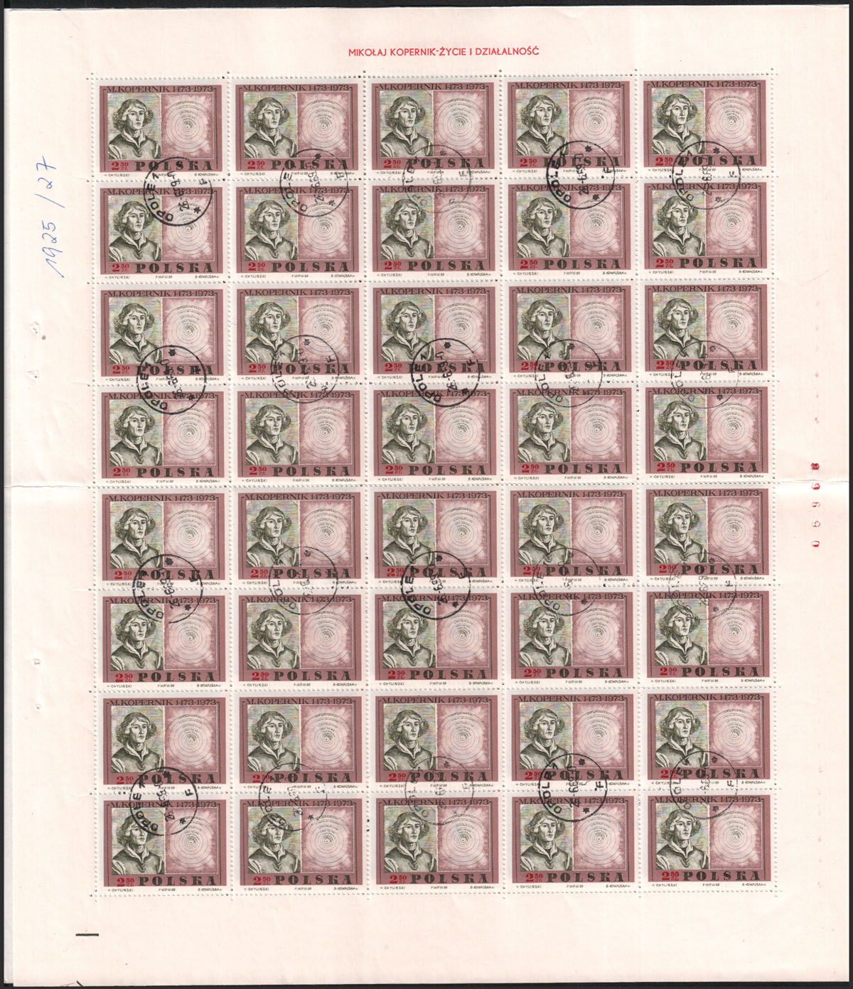 1969 500. rocznica urodzin Mikołaja Kopernika, seria w stemplowanych arkuszach sprzedażnych złożonych w połowie. | Fi.1778-80 ark. Mi.1925-7 |