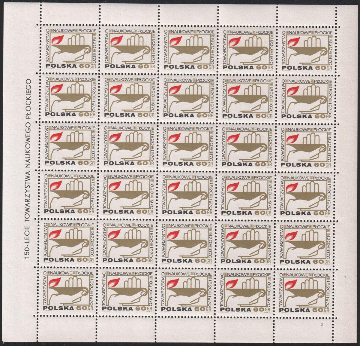 1970 150. rocznica Towarzystwa Naukowego Płockiego, arkusz sprzedażny. | Fi.1862 ark. Mi.2009 |