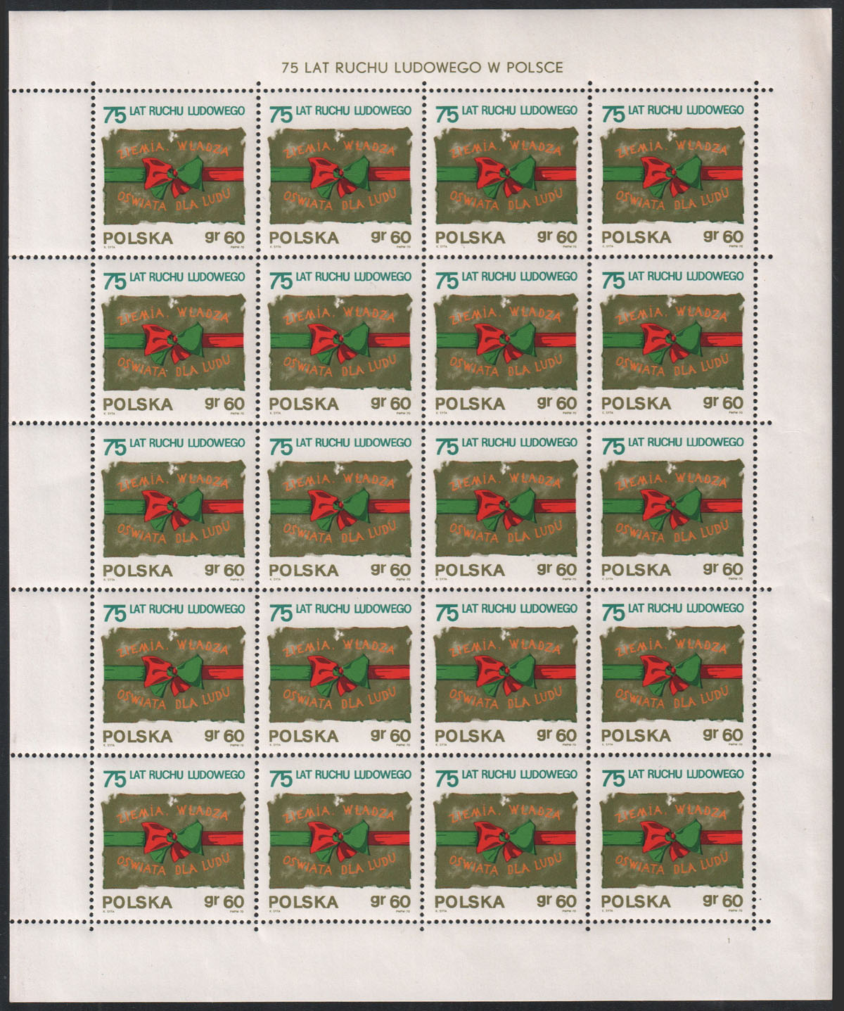 1970 75-lecie ruchu ludowego, arkusz sprzedażny. | Fi.1859 ark. Mi.2006 |