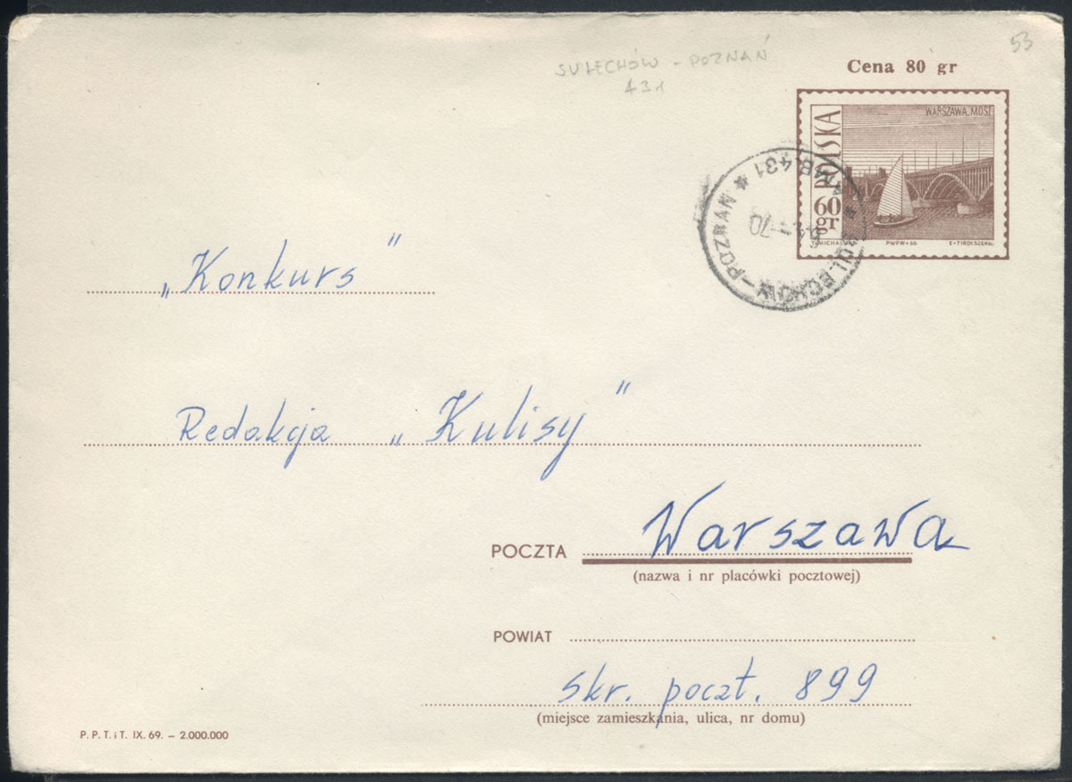 1970 list nadany w ambulansie pocztowym na trasie Sulechów - Poznań nr 431. | Fi.Ck43 |