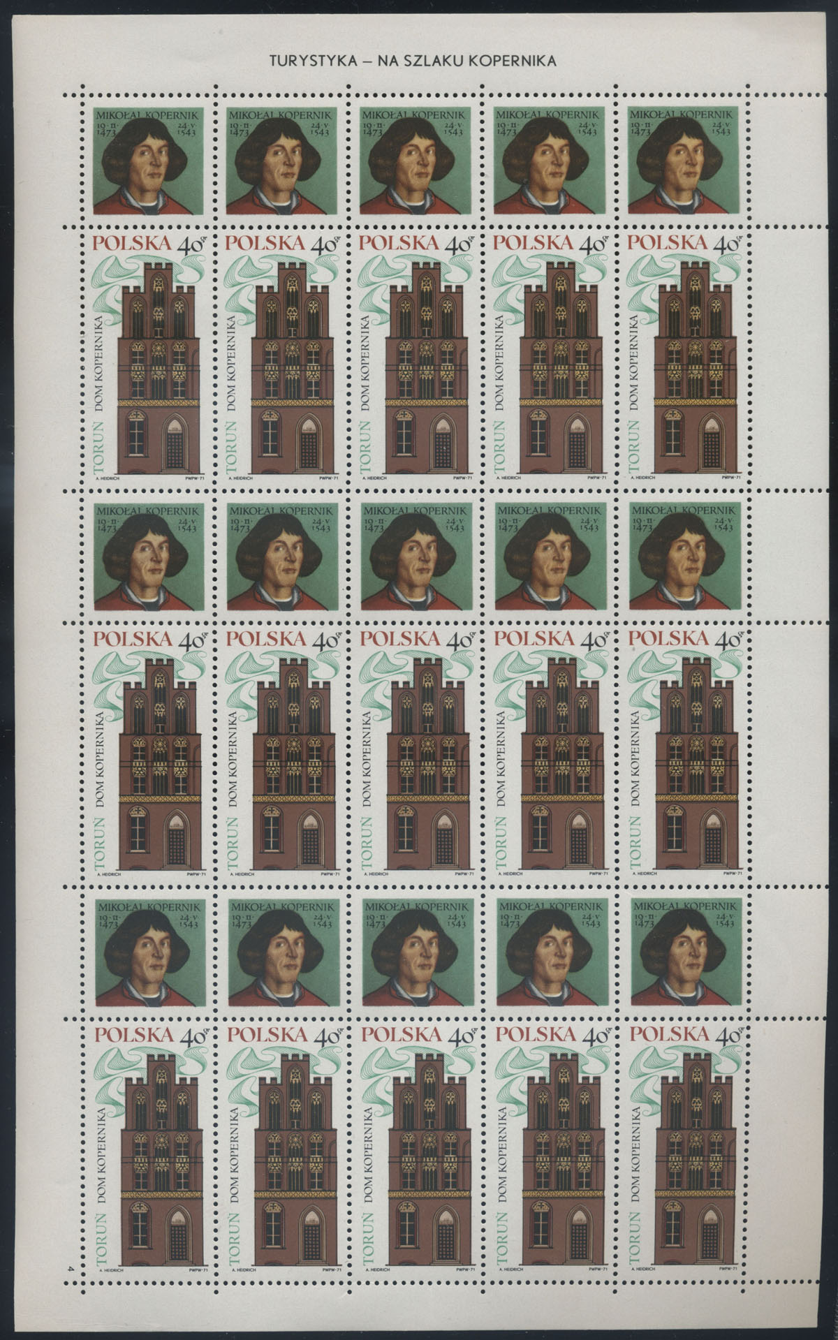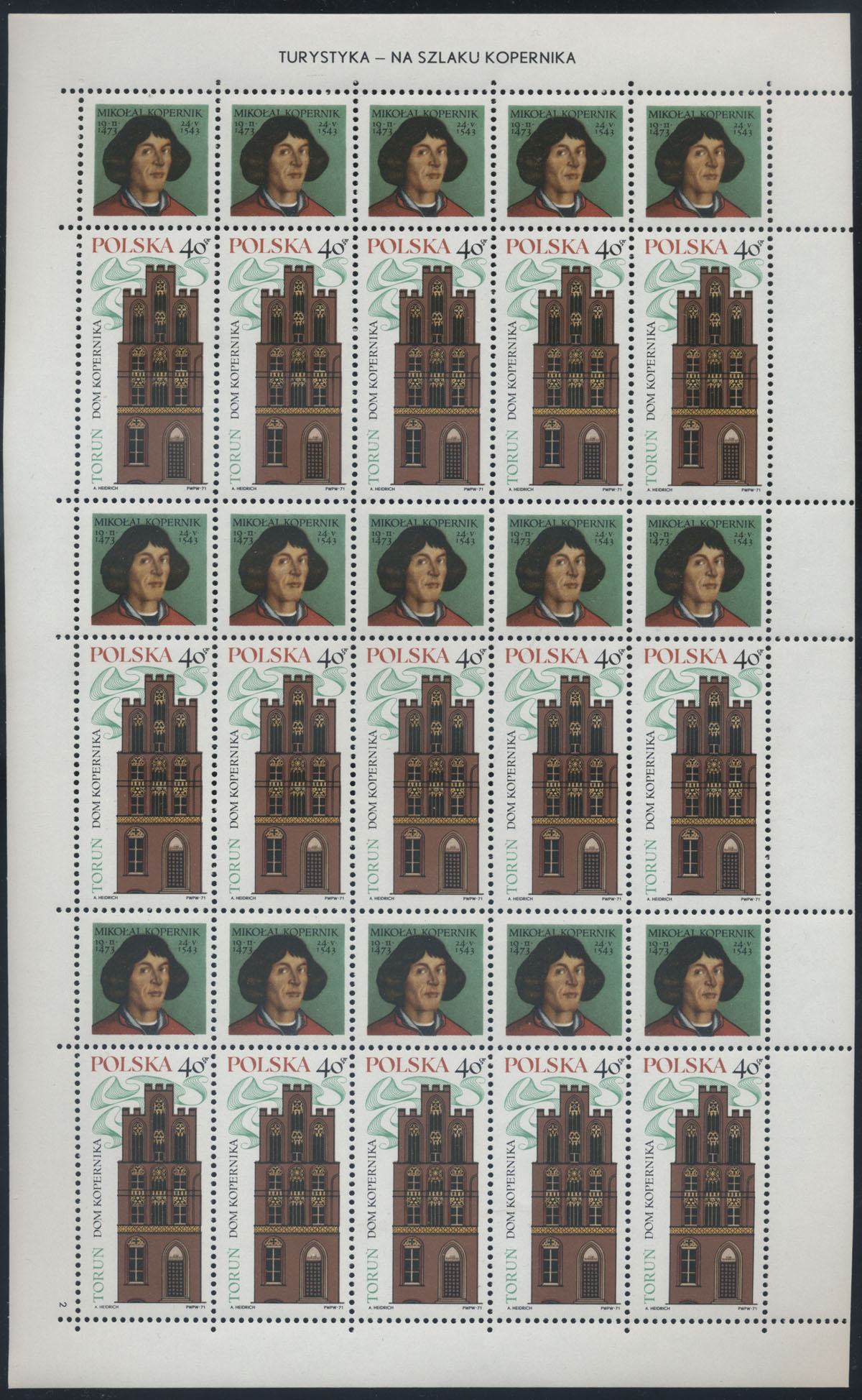 1971 turystyka - na szlaku Kopernika, arkusz sprzedażny znaczka za 40 gr. z sektora 1. | Fi.1940 ark. Mi.2088 |