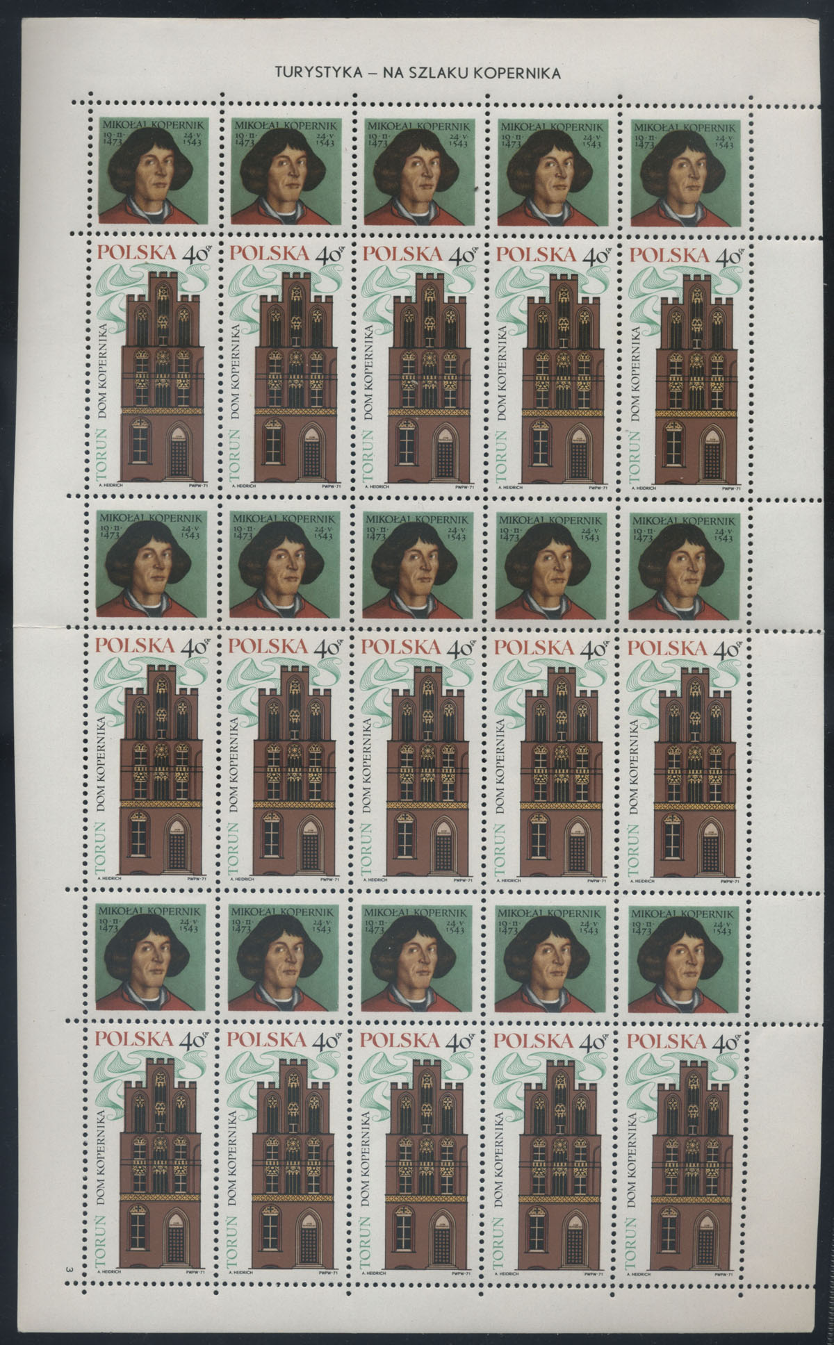 1971 turystyka - na szlaku Kopernika, arkusz sprzedażny znaczka za 40 gr. z sektora 3. | Fi.1940 ark. Mi.2088 |