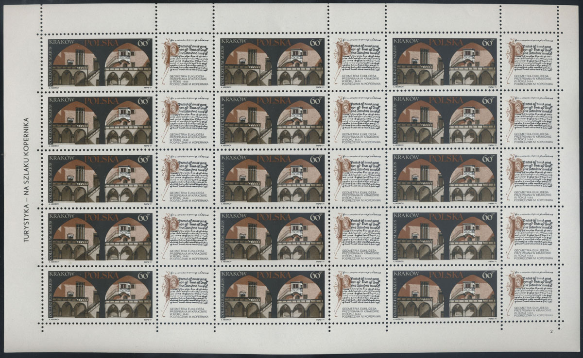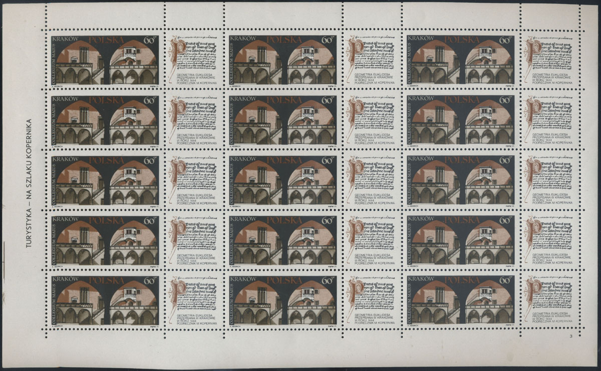 1971 turystyka - na szlaku Kopernika, arkusz sprzedażny znaczka za 60 gr. z sektora 4. | Fi.1941 ark. Mi.2089 |