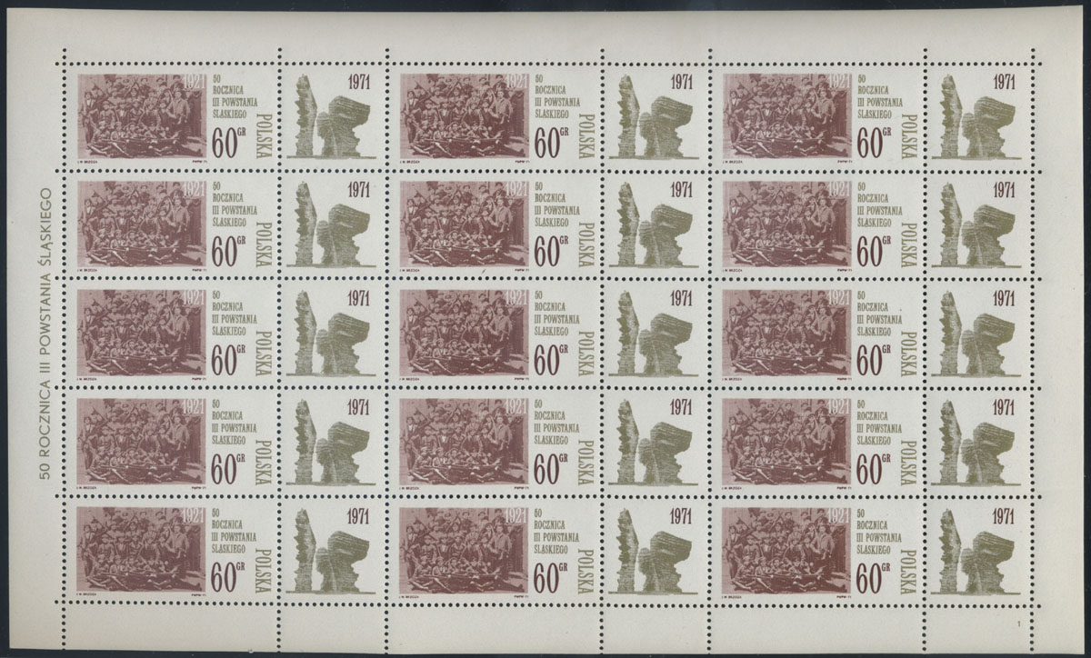 1971 50. rocznica Powstania Śląskiego, arkusz sprzedażny. | Fi.1931 ark. Mi.2078 |
