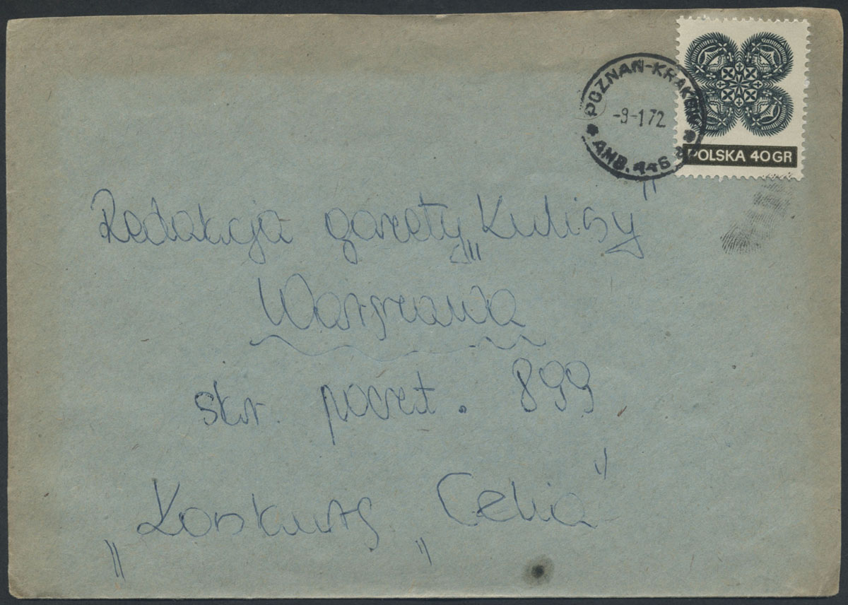 1972 list nadany w ambulansie pocztowym na trasie Poznań - Kraków nr 446. | Fi.1946 |