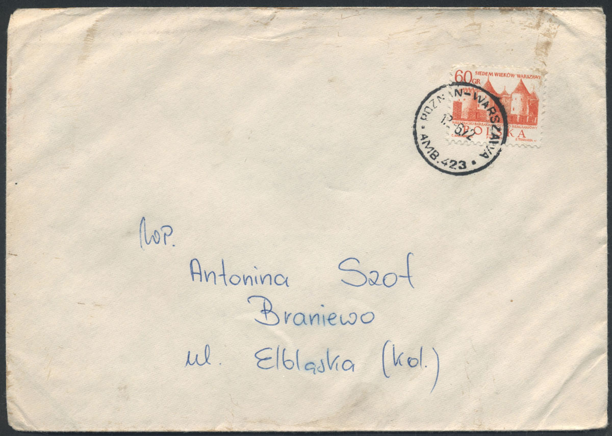 1972 list nadany w ambulansie pocztowym na trasie Poznań - Warszawa nr 423. | Fi.1452 |