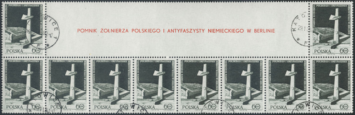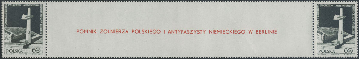 1972 odsłonięcie pomnika żołnierza polskiego i antyfaszysty niemieckiego w Berlinie, górny część arkusza z parką rozdzieloną przywieszką. | Fi.2012 Mi.2159 |