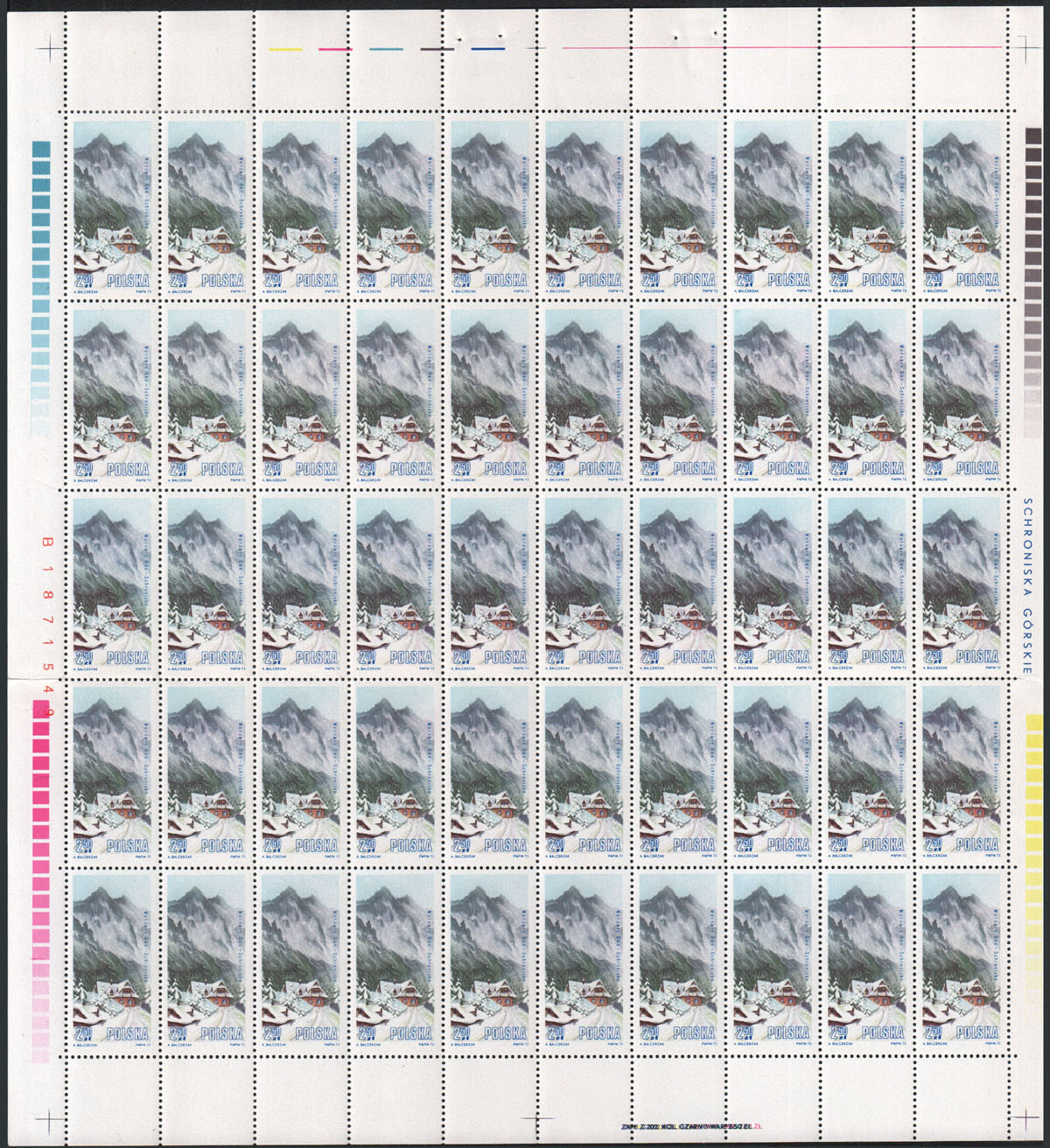 1972 schroniska górskie, arkusz sprzedażny znaczka za 2,50 zł złożony w połowie. | Fi.2061 ark. Mi.2208 |