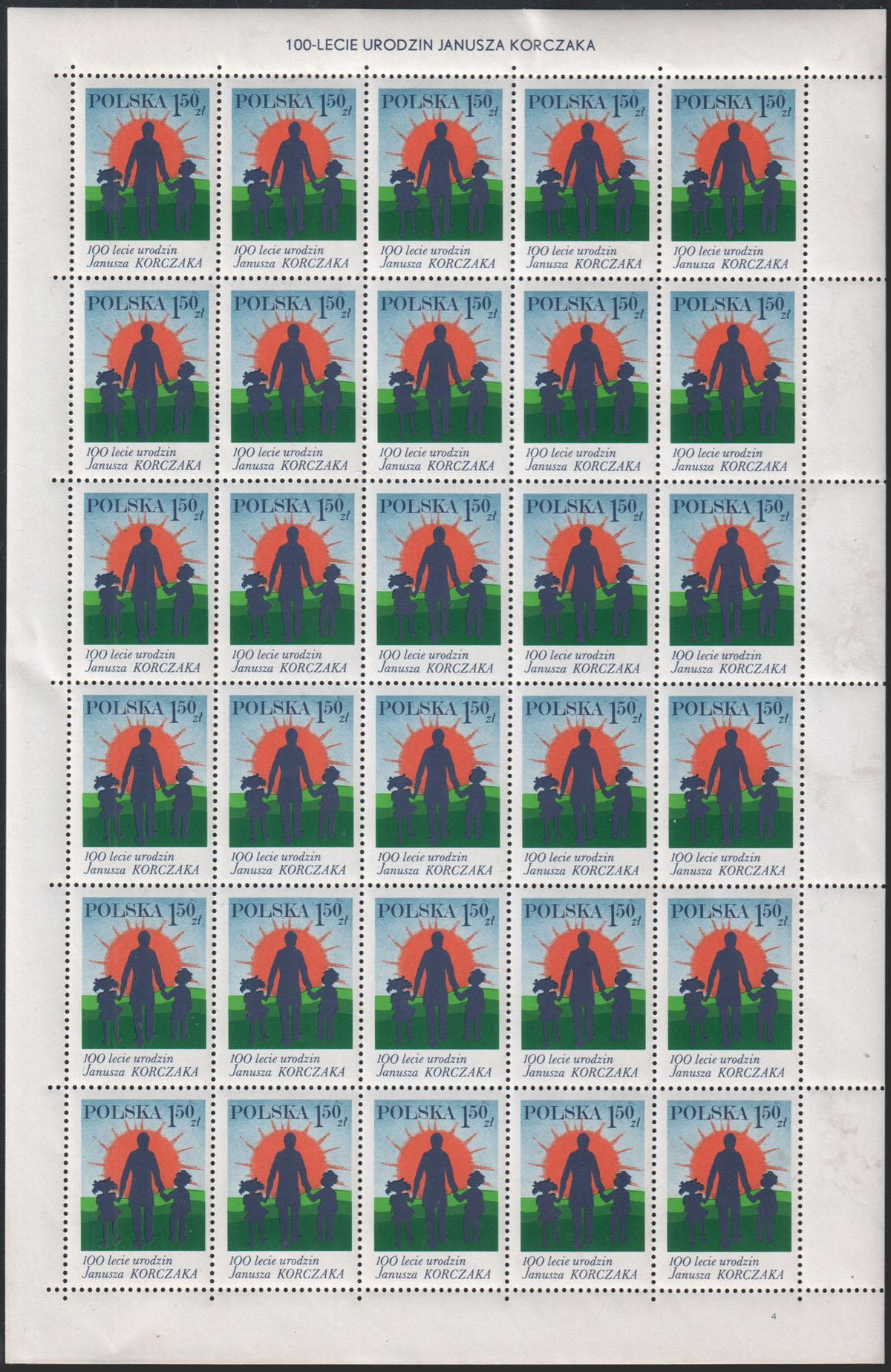 1978 100. rocznica urodzin Janusza Korczaka, arkusz sprzedażny. | Fi.2435 ark. Mi.2582 |