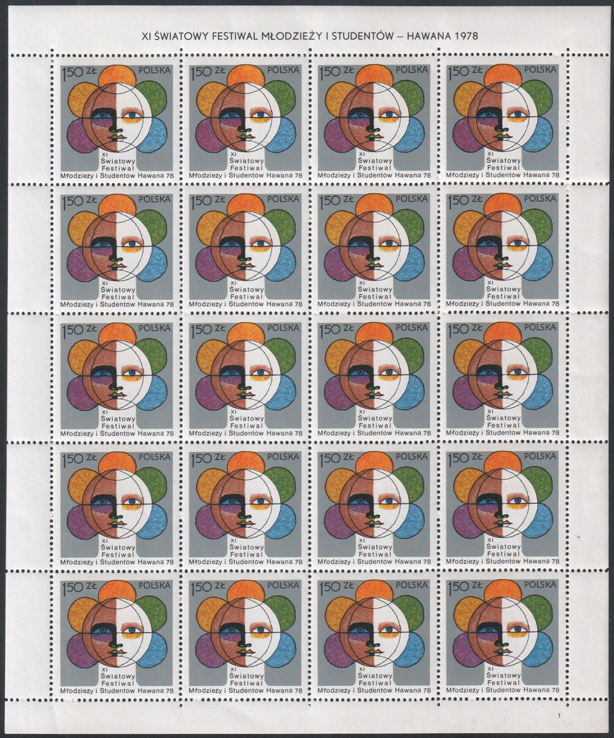 1978 XI Światowy Festiwal Młodzieży i Studentów w Hawanie, arkusz sprzedażny. | Fi.2418 ark. Mi.2565 |