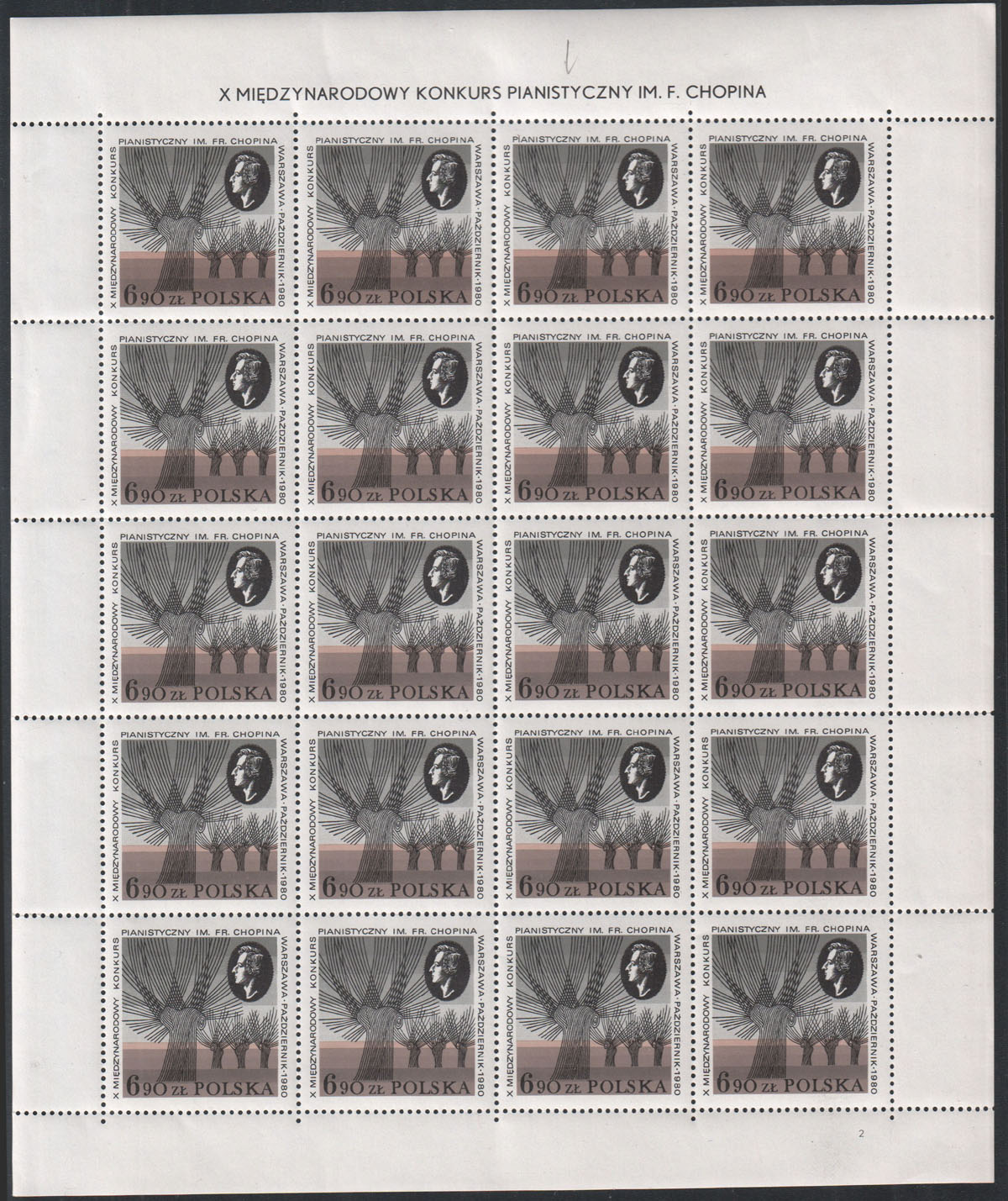 1980 X Międzynarodowy Konkurs Pianistyczny im. Fryderyka Chopina, arkusz sprzedażny. | Fi.2566 ark. Mi.2714 |