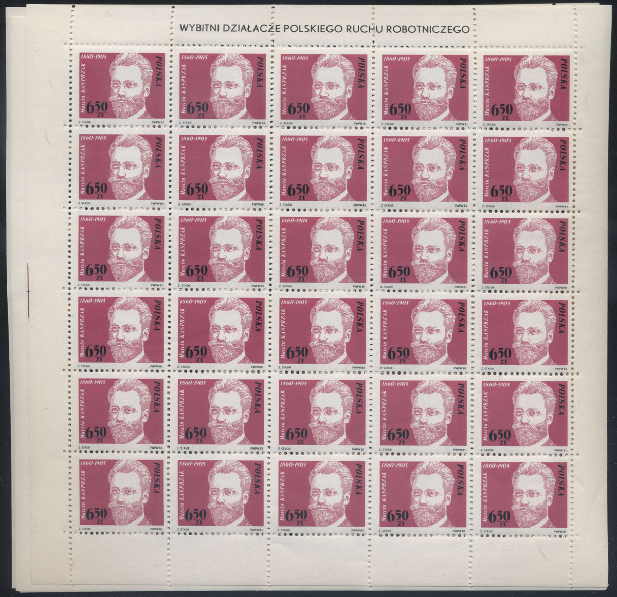 1981 działacze polskiego ruchu robotniczego, seria w arkuszach sprzedażnych. | Fi.2624-7 ark. Mi.2772-5 |