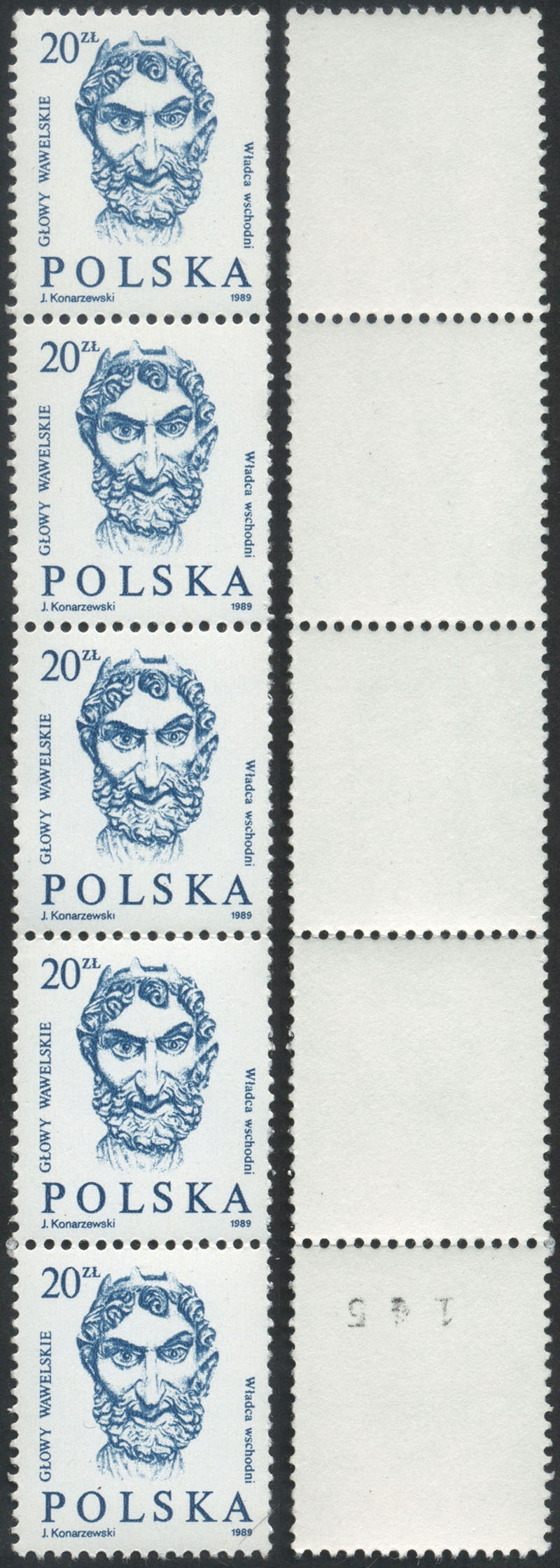 1989 głowy wawelskie, pasek z rolki do automatu z numeracja na gumie. | Fi.3048 Mi.3196 |