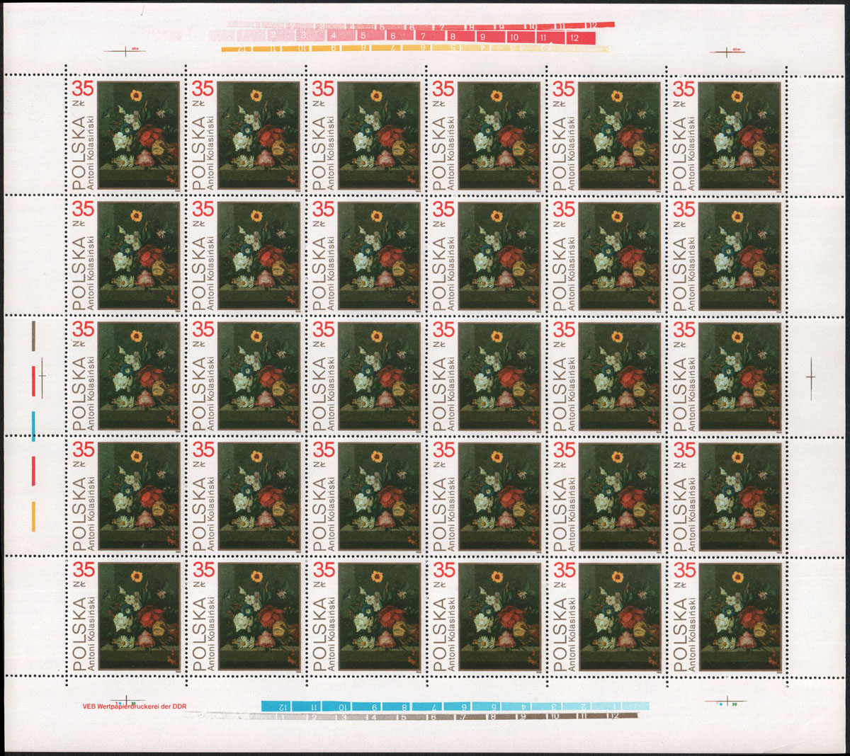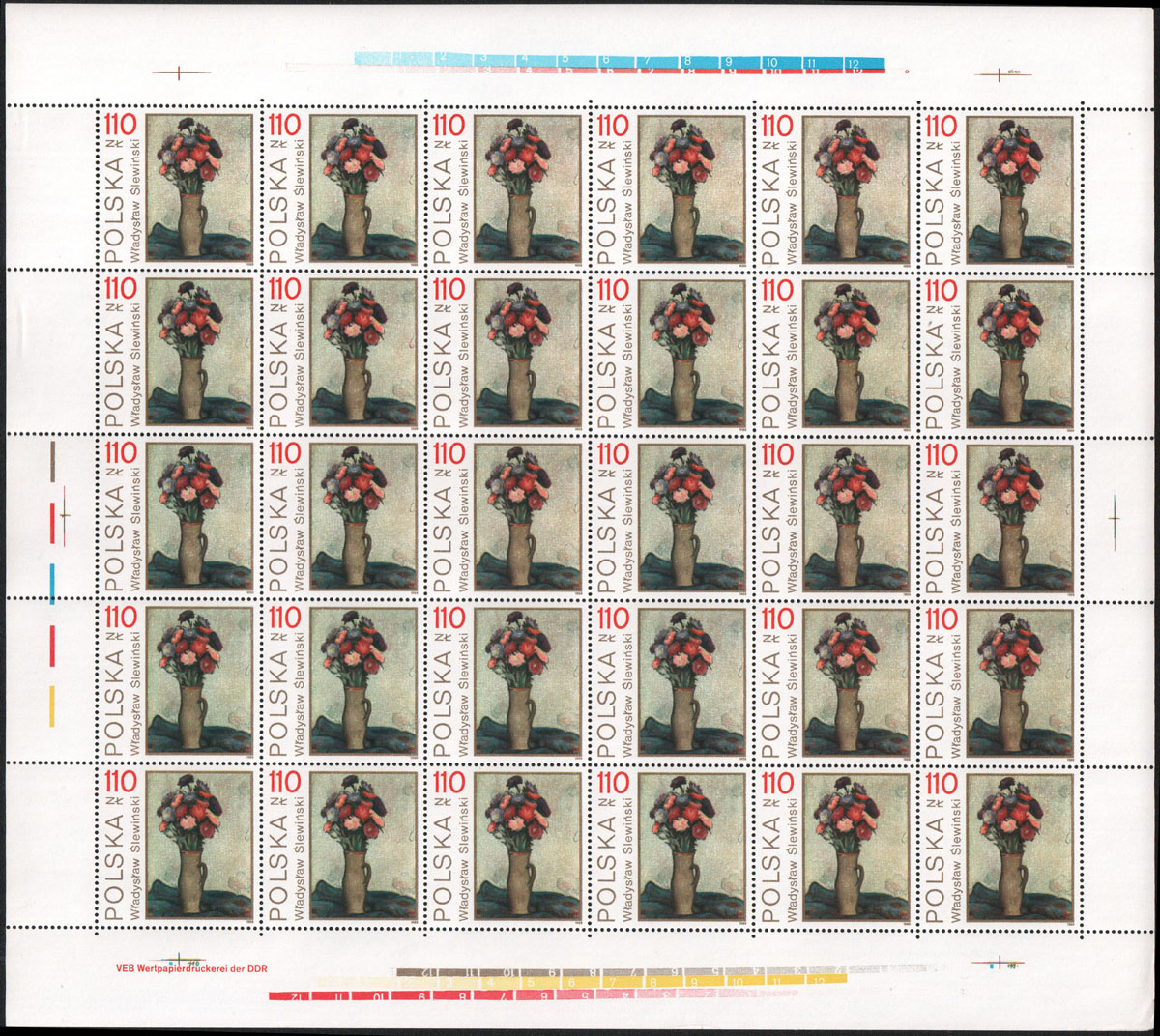 1989 kwiaty w malarstwie polskim, arkusz sprzedażny znaczka za 35 zł. | Fi.3091 ark. Mi.3239 |