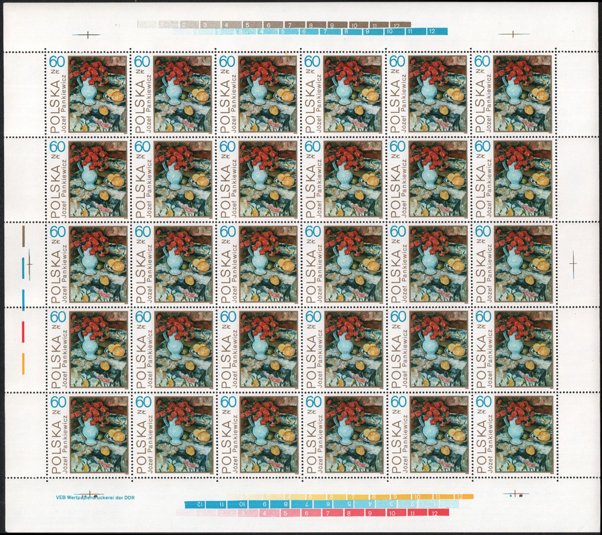 1989 kwiaty w malarstwie polskim, arkusz sprzedażny znaczka za 60 zł. | Fi.3093 ark. Mi.3241 |