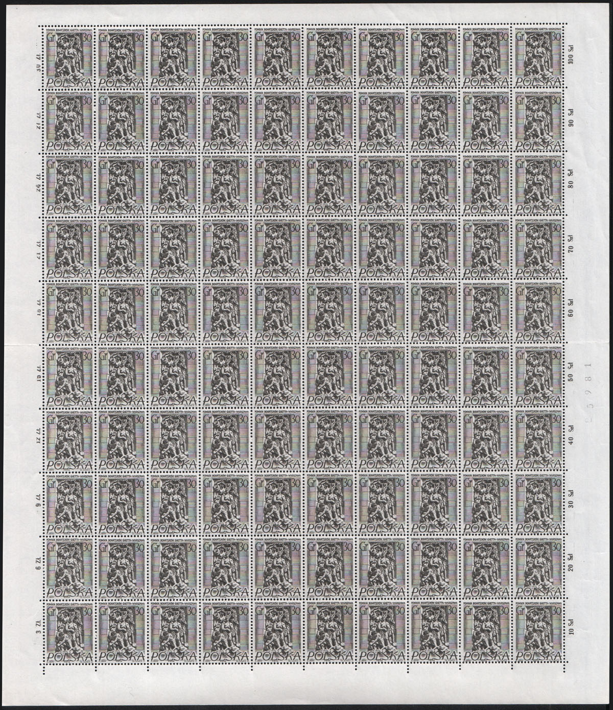 1956 pomniki Warszawy, arkusz znaczka za 30 gr. złożony w połowie. | Fi.830 ark. Mi.974 |