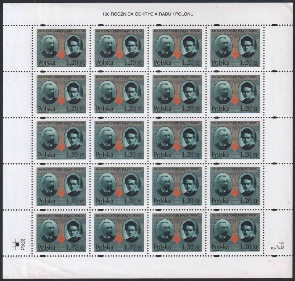 1998 100. rocznica odkrycia radu i polonu, arkusz sprzedażny. | Fi.3578 ark. Mi.3726 |