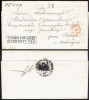 1839 Królestwo Polskie, kompletny list zagraniczny z Warszawy do Londynu wysłany 23/9, stempel nadawczy typu IIIC, stemple tranzytowe: Berlin i efektowny Hamburg, kasownik odbiorczy Londyn 7 OCT; liczne adnotacje pocztowe dotyczące masy przesyłki i opłat pocztowych; nietypowy, stosunkowo rzadki kierunek wysyłki; list o ładnie udokumentowanym obiegu pocztowym, złożony i przechowywany w archiwum (stąd pochodzi pionowe zagięcie) na karcie albumowej, wewnątrz dodatkowo dołączone rozliczenia. | |