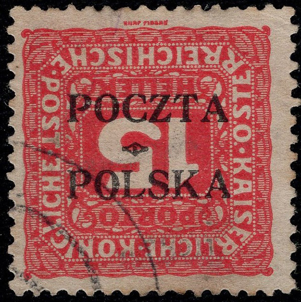 1919 wydanie krakowskie, znaczek z nadrukiem formy IIA z poz. 73, gwarancja Jendroszek, z oznaczeniem pozycji Landre. | Fi.D6 |