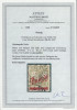 1920 wydanie prowizoryczne na przesyłki lotnicze, znaczek za 40./40 pf. z podwójnym nadrukiem, niespotykany jako oryginalnie kasowany i katalogowany jako kasowany grzecznościowo (Fi.1200.-), poza minimalnym wtrąceniem w papierze na lewym marginesie zachowany w bardzo ładnym stanie, nowy Kurzbefund Bock BPP.