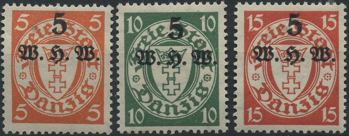 1930 wydanie okolicznościowe dla uczczenia 10. rocznicy powstania Wolnego Miasta Gdańska, okolicznościowa seria na lotniczym liście poleconym do Niemiec, na odwrocie stemple tranzytowy i odbiorczy. | Fi.214-24 |