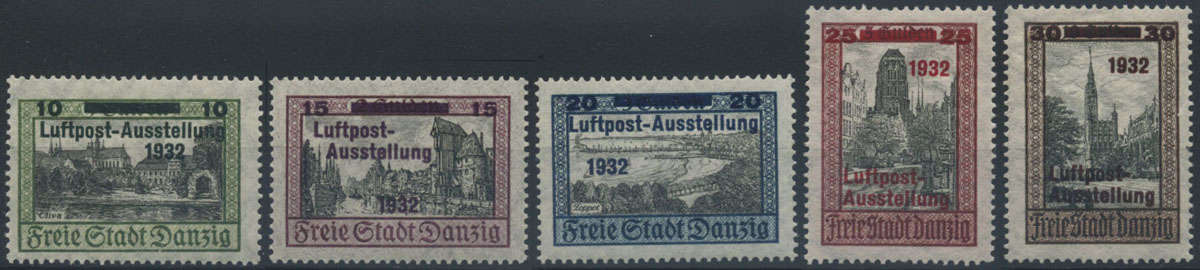 1932 wydanie przedrukowe, Międzynarodowa Wystawa Poczty Lotniczej - LUPOSTA, seria czysta w pięknym stanie (Fi.900.-). | Fi.225-29 Mi.231-35 |