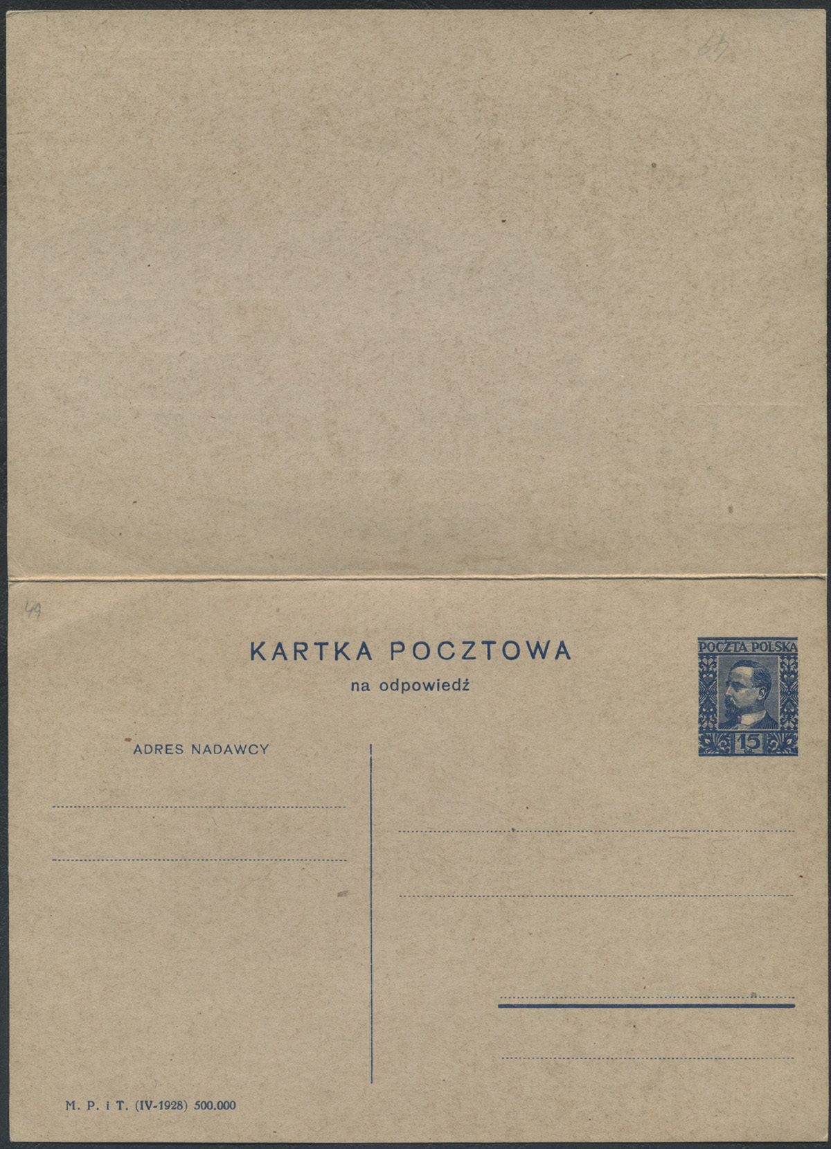 1938 Henryk Sienkiewicz, podwójna całostka z opłaconą odpowiedzią z sygnaturą IV-1928. | Fi.Cp49I |