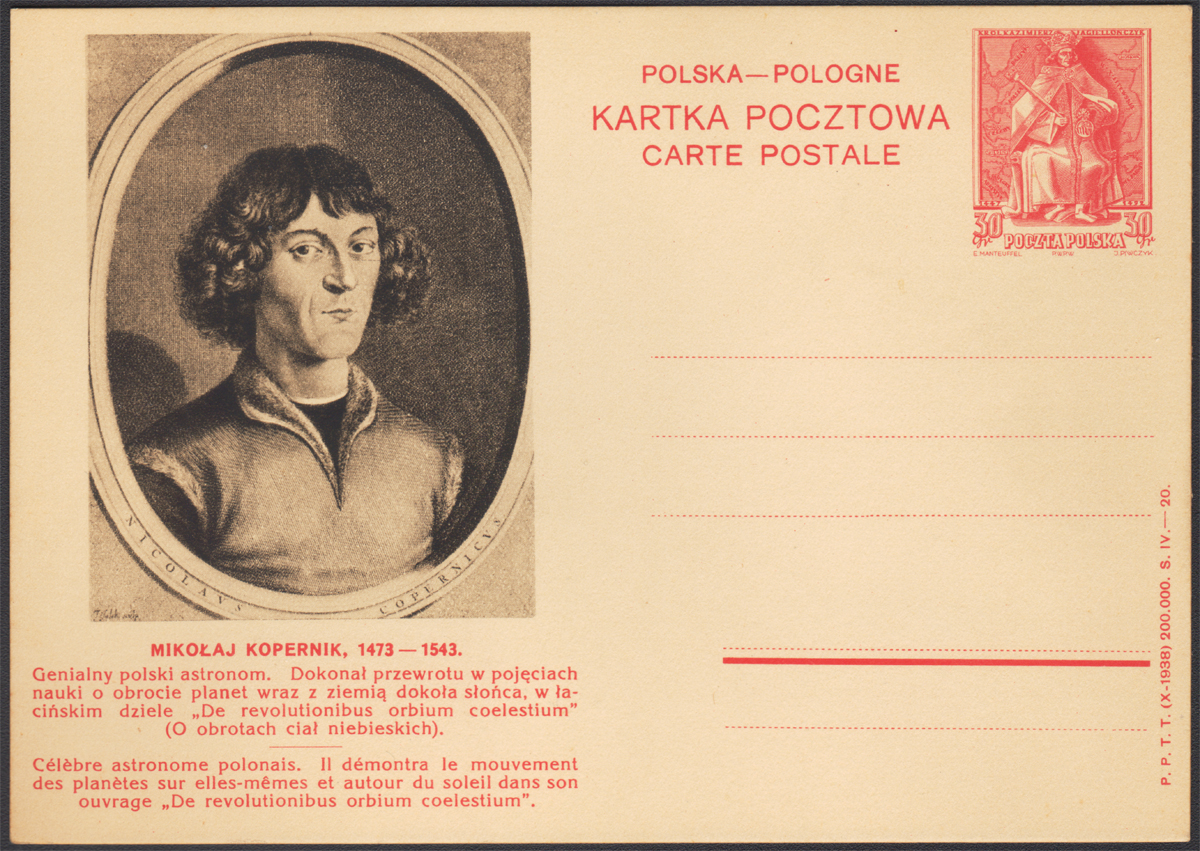 1938 Kazimierz Jagiellończyk, całostka za znakiem opłaty 30 gr. przeznaczona do obrotu zagranicznego z ilustracją 20 - Mikołaj Kopernik (Fi.600.-) - to ze względu na temat jedna z najbardziej poszukiwanych kart tego wydania. | Fi.Cp87 |