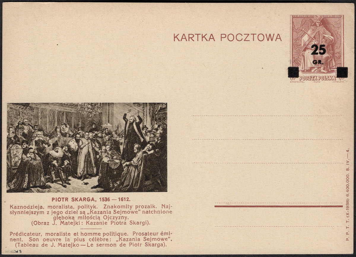 1944 wydanie prowizoryczne, całostka z ilustracją 19, gruby typ nadruku II. | Fi.Cp89II |