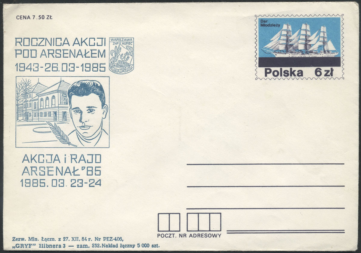 1985 całostka z dodrukiem z okazji rocznicy akcji pod Arsenałem. | Fi.Ck69 |