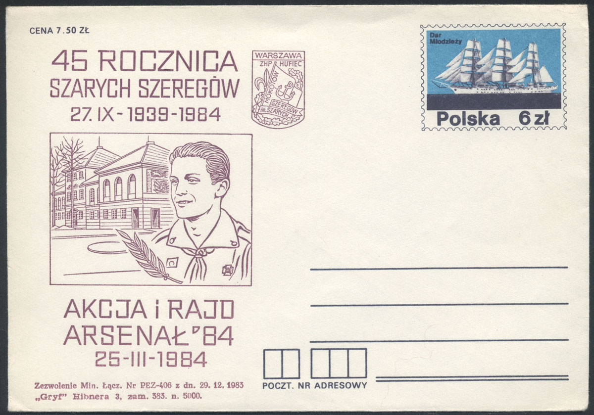 1984 całostka z dodrukiem z okazji 45. rocznicy powstania szarych Szeregów. | Fi.Ck69 |