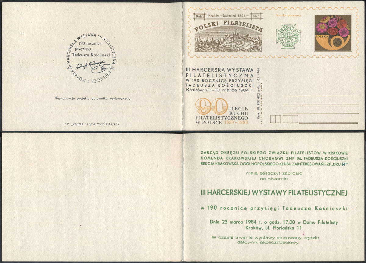 1984 całostka karnet z dodrukiem z okazji Harcerskiej Wystawy Filatelistycznej. | Fi.Cp826K |