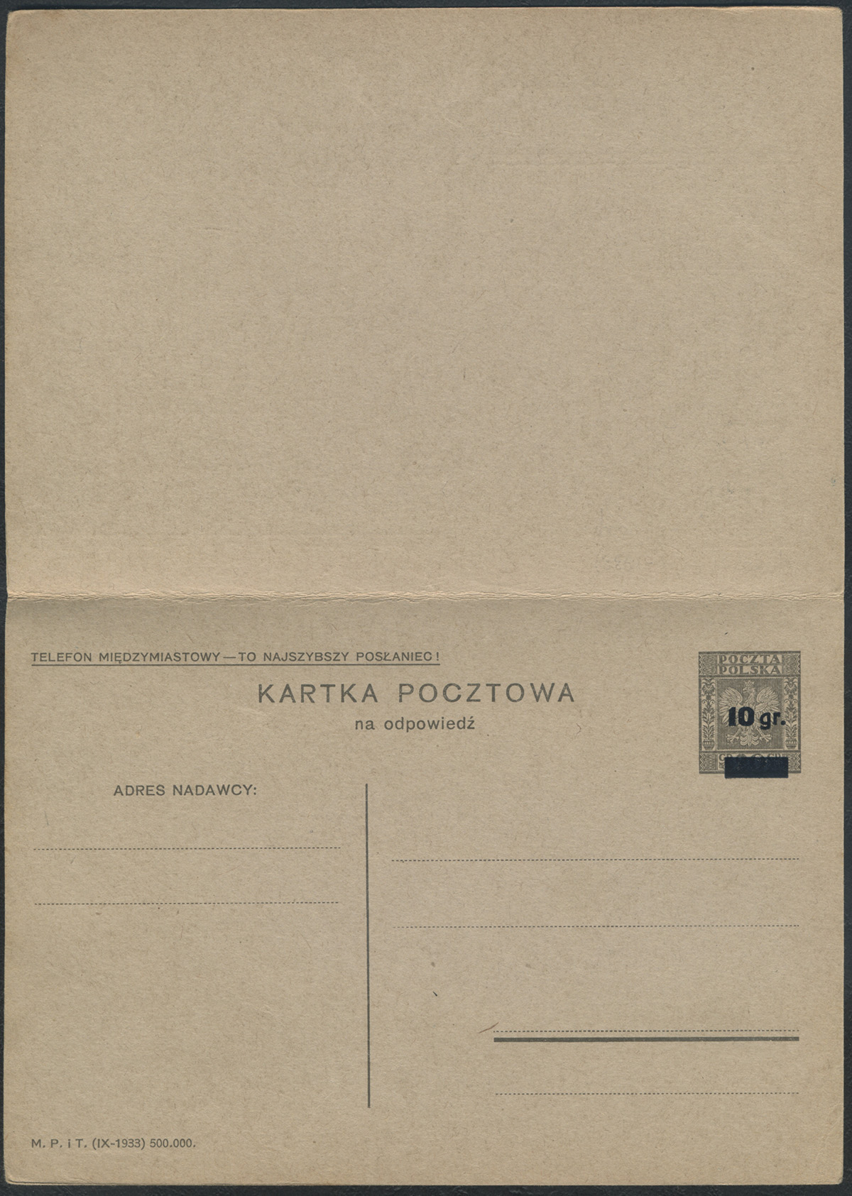 1933 wydanie prowizoryczne, całostka z sygnaturą krótką. | Fi.Cp58IIa |