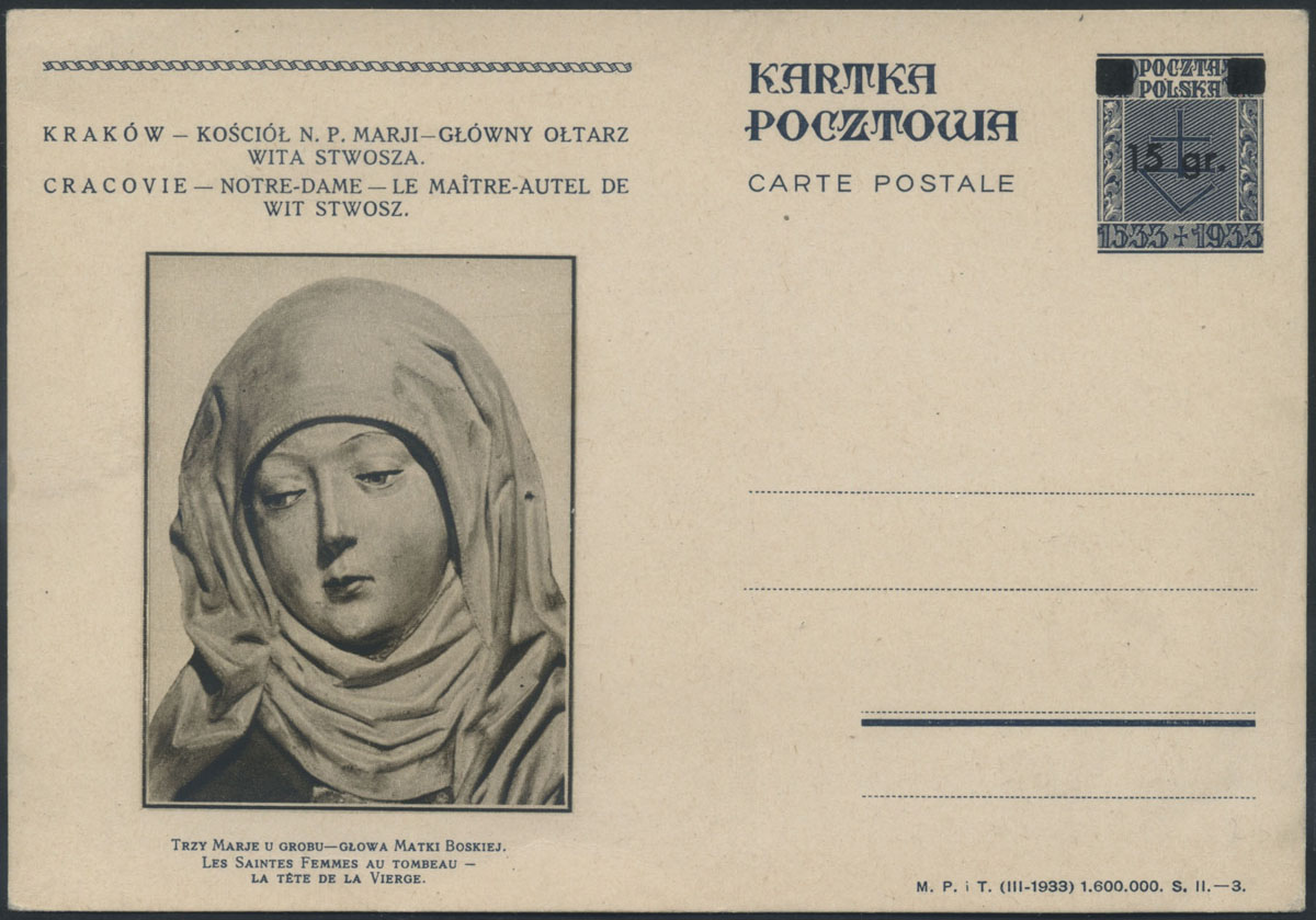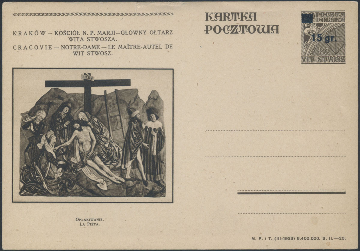 1933 400-lecie śmierci Wita Stwosza, całostka z ilustracją nr 15. | Fi.Cp57 |