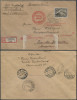 1937 Warszawa - Wilno - Helsinki, komplet dwóch listów przesłanych 29.IV pierwszym lotem do Helsinek: z Warszawy i Wilna, list z Warszawy znaczki skasowane datownikiem Warszawa 2 "LOT", dodatkowy czerwony stempel okolicznościowy "PIERWSZY LOT 29.IV WARSZAWA HELSINKI Warszawa 2" (Myślicki 37 052), list z Wilna znaczki skasowane fioletowym stemplem okolicznościowym "PIERWSZY LOT 29.IV WARSZAWA HELSINKI WILNO 2" (Myślicki 37 053) oba stemple o stopniu rzadkości - C; na odwrocie kopert datowniki odbiorcze Helsinki 29.IV; bardzo dobry stan zachowania. | Fi.132a-b |