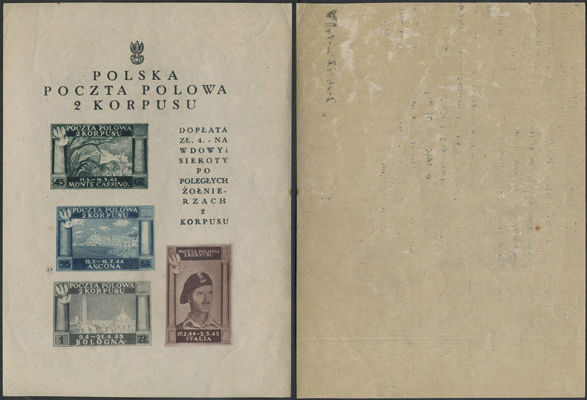1946 Poczta Polowa II Korpusu, blok z śladami podklejenia na odwrocie. | Fi.bl.1 |