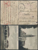 1944 Öhringen w Wirtembergii - niemiecki obóz pracy przymusowej dla mieszkańców Warszawy wywiezionych jeszcze w czasie trwającego Powstania; oficjalnie był to zakład wytwarzający meble w rzeczywistości stanowił on zaledwie kamuflaż dla olbrzymiej podziemnej fabryki samolotów; karta wysłana 14.11 z obozu do Brwinowa, dodatkowo dwa oryginalne zdjęcia przedstawiające naziemną, maskującą część obozu, dodatkowo krótka notatka sporządzona przez krewną osoby przebywającej w obozie; bardzo rzadki zestaw w dobrym stanie zachowania. | |