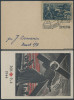 1944 dwa znaczki dopłaty na niedofrankowanej kopercie listu wysłanego przez Koło Filatelistów (stempelek nadawcy na odwrocie), ponieważ w tym okresie opłata za list wynosiła 20 fen., dopłatę pobrano w podwójnej wysokości brakującej opłaty, adnotacja czerwoną kredką "pobrać", koperty w obrocie wewnątrzobozowym należą do rzadko spotykanych walorów, walor w dobrym stanie zachowania, gwarancja. | Fi.36, D5, D6 |
