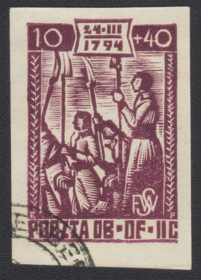 1944 150. rocznica Powstania Kościuszkowskiego, kasowany znaczek za 10 + 40 f., gwarancja. | Fi.37 |