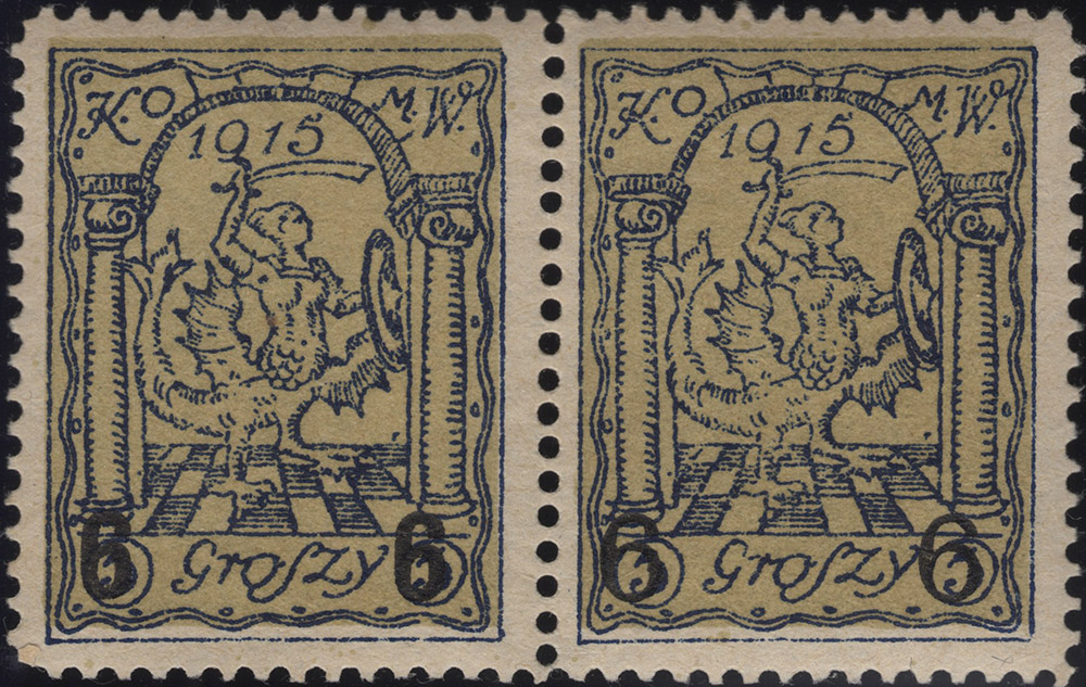 1915 Warszawa, parka znaczków wydania przedrukowego, gwarancja i oznaczenie Berbeka. | Fi.3IIb |