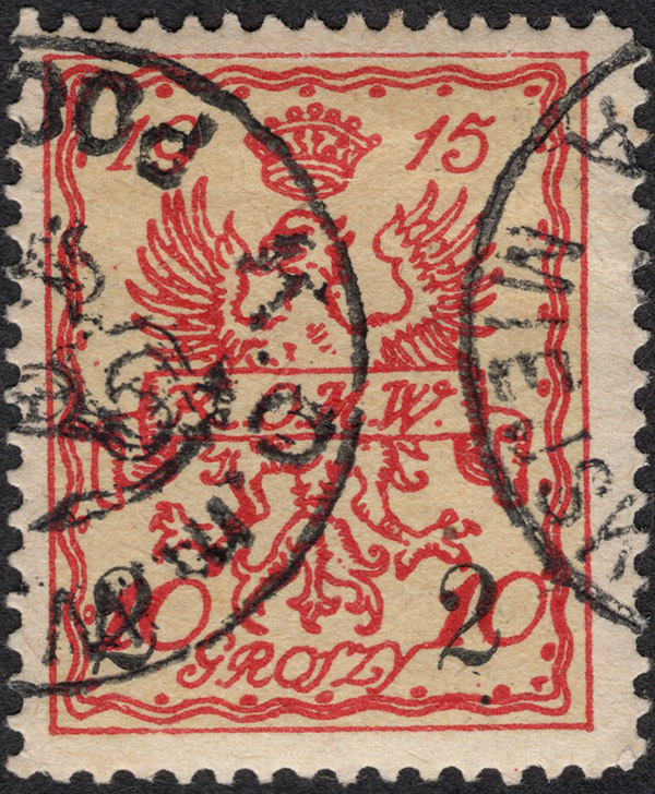 1915 Warszawa, znaczek wydania przedrukowego, gwarancja Jungjohann i z oznaczeniem Perzyński. | Fi.3Iaa |