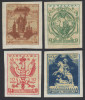 1916 Zawiercie, czworoblok znaczków za 10 f. bez nadruku kontrolnego, bez gumy, ale w bardzo ładnym stanie zachowania, bardzo ciekawy bo z błędem na dolnym prawym znaczku "płynąca na pierwszym planie rzeka Warta tworzy w zakolu rozlewisko", dodatkowo na lewym dolnym znaczku "brak krzyża na prawym pagórku", gwarancja Mikstein. | Fi.1III B |