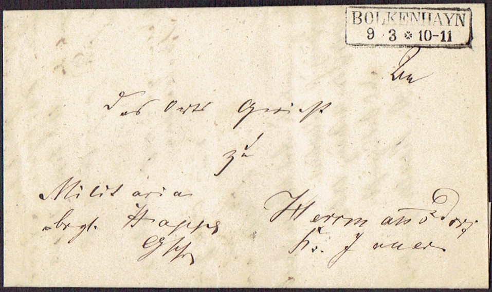 1850 po, Bolkenhayn (Bolków k.Jawora), kompletny składany list wysłany z Bolkenhayn, z tyłu pieczęć lakowa. | |