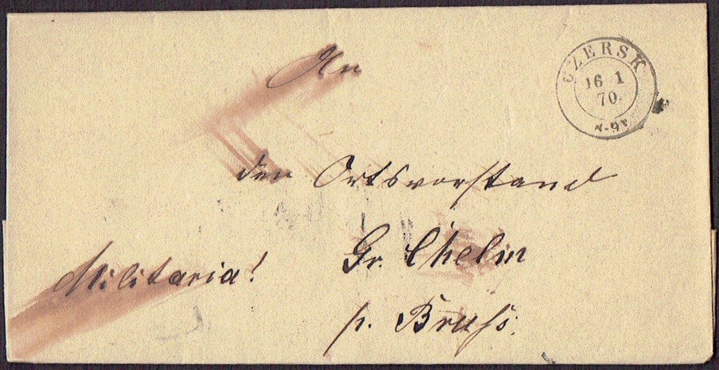 1870 Czersk (k.Chojnic), obwoluta listu, militaria. | |